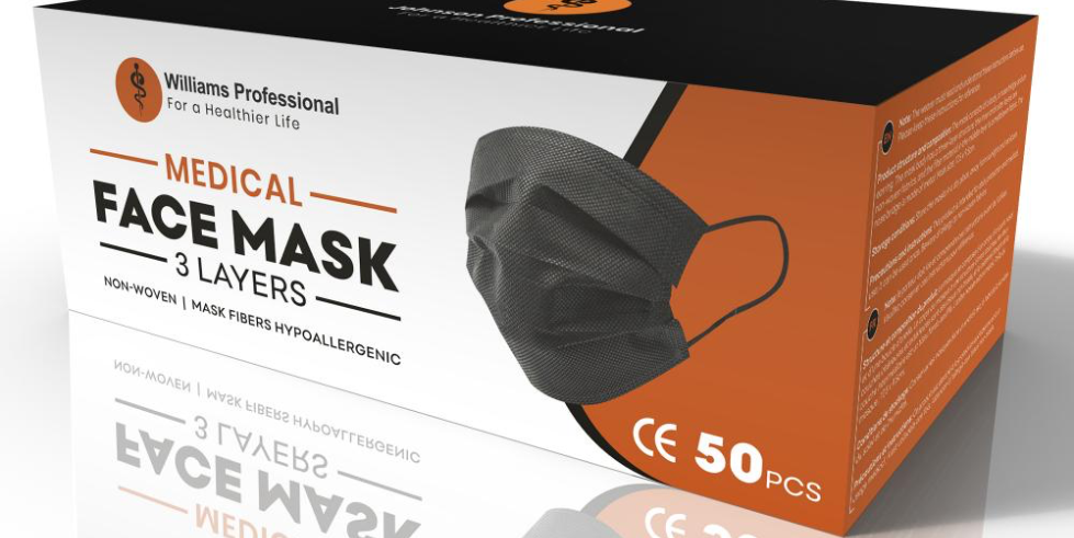 Vente en lot de 200 boites de 50 masques chirurgicaux noir.