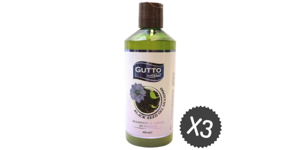 Le shampoing Gutto à l’huile de nigelle permet d’assainir le cuir chevelu et de retarder la chute des cheveux.