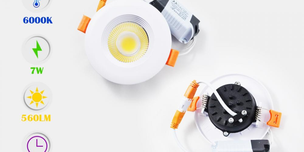 100 Panneaux encastrable 7W LED COB rond 6500K blanc froid - lumen 595 - Dim. 90 x 40 mm / Diamètre de coupe ; 70 mm, IP20 - LED COB (AC110-260V) - durée de vie 20,000 heures