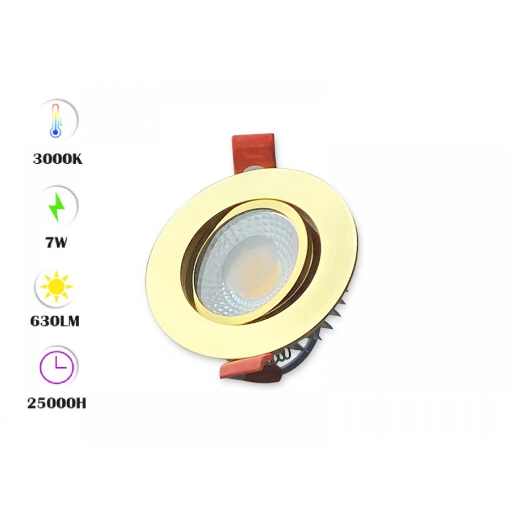 Spot COB 7W LED DORÉ encastrable rond 3000K blanc chaud (x50)