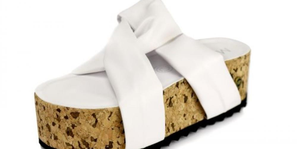 Materiale: piattaforma foderata in juta, pelle coagulata.