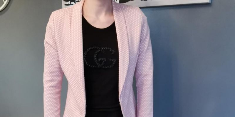 Ce blazer donne une allure chic. Je mesure 166 cm et porte du S/36. Longueur : 64 cm. Composition : 95 % Polyester, 5 % Elasthanne.
