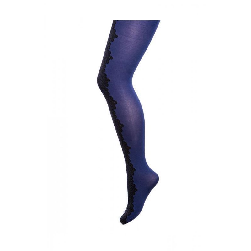 Tights 50 den, with lace pattern and strip, DEIRA col, Polyamide - 70%, Polypropylene - 24%, Elastane - 5%, Cotton - 1%, ZENZERO, BIANCO, BLU NOTTE. S, M, L. Made in Italy