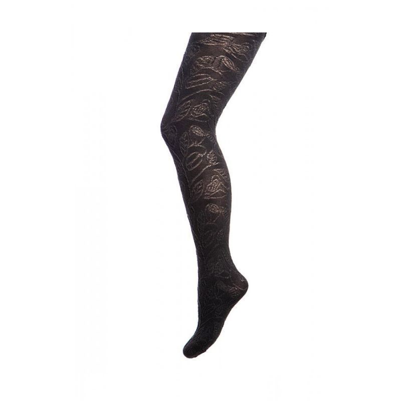 Cotton tights with foliage and flower pattern, CHEOPE Collant, Composition: 75% cotton, 20% polyamide, 5% elastane, AVORIO, ZENZERO, NERO. S, M, L. Made in Italy