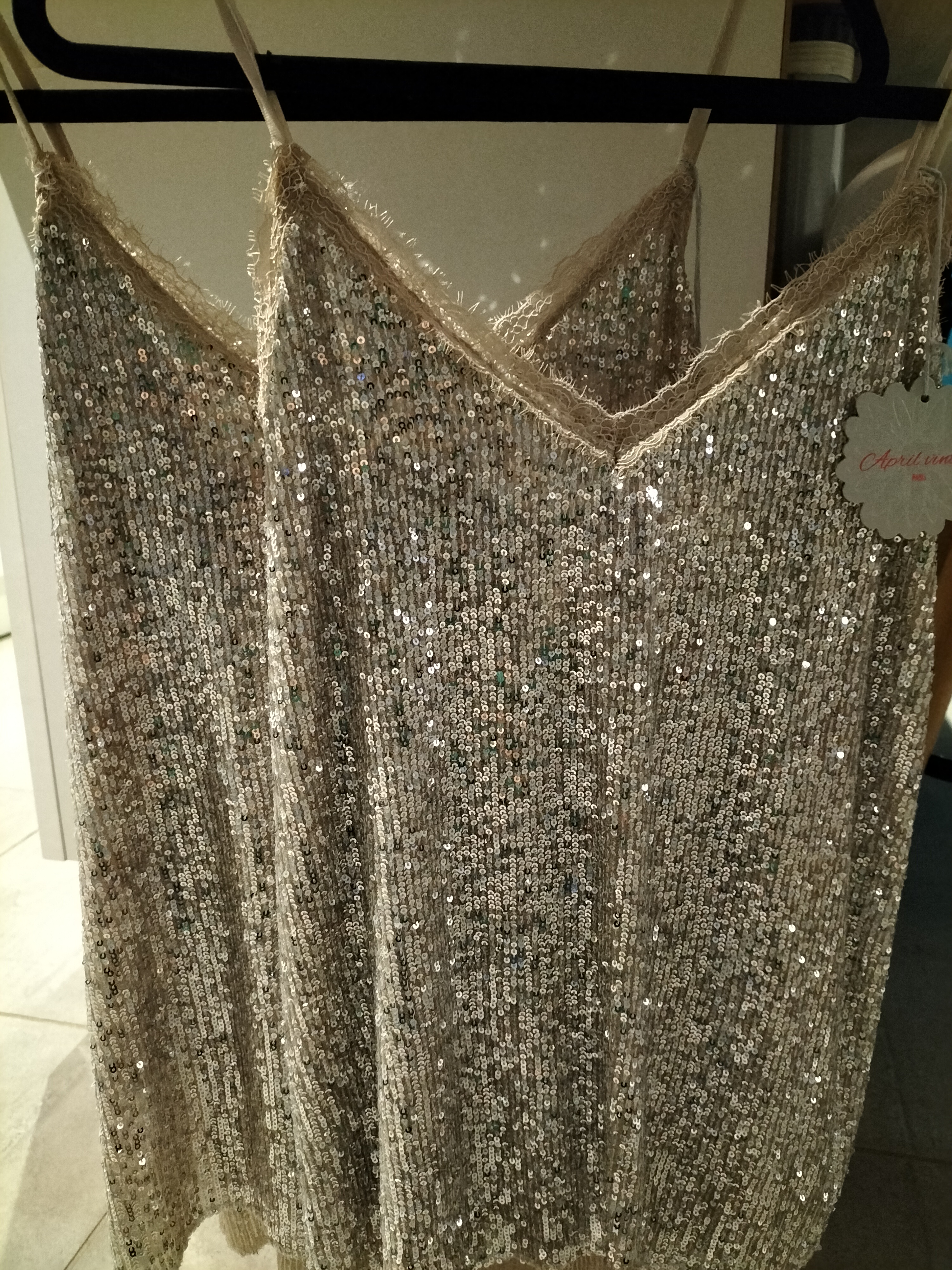 tout doublé, paillette, un peu de dentelle sur l encolure,