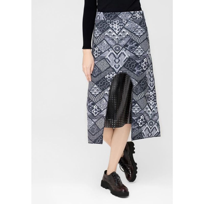 MOSS COPENHAGEN - Jupe Mi longue Fleuri noir et jaune