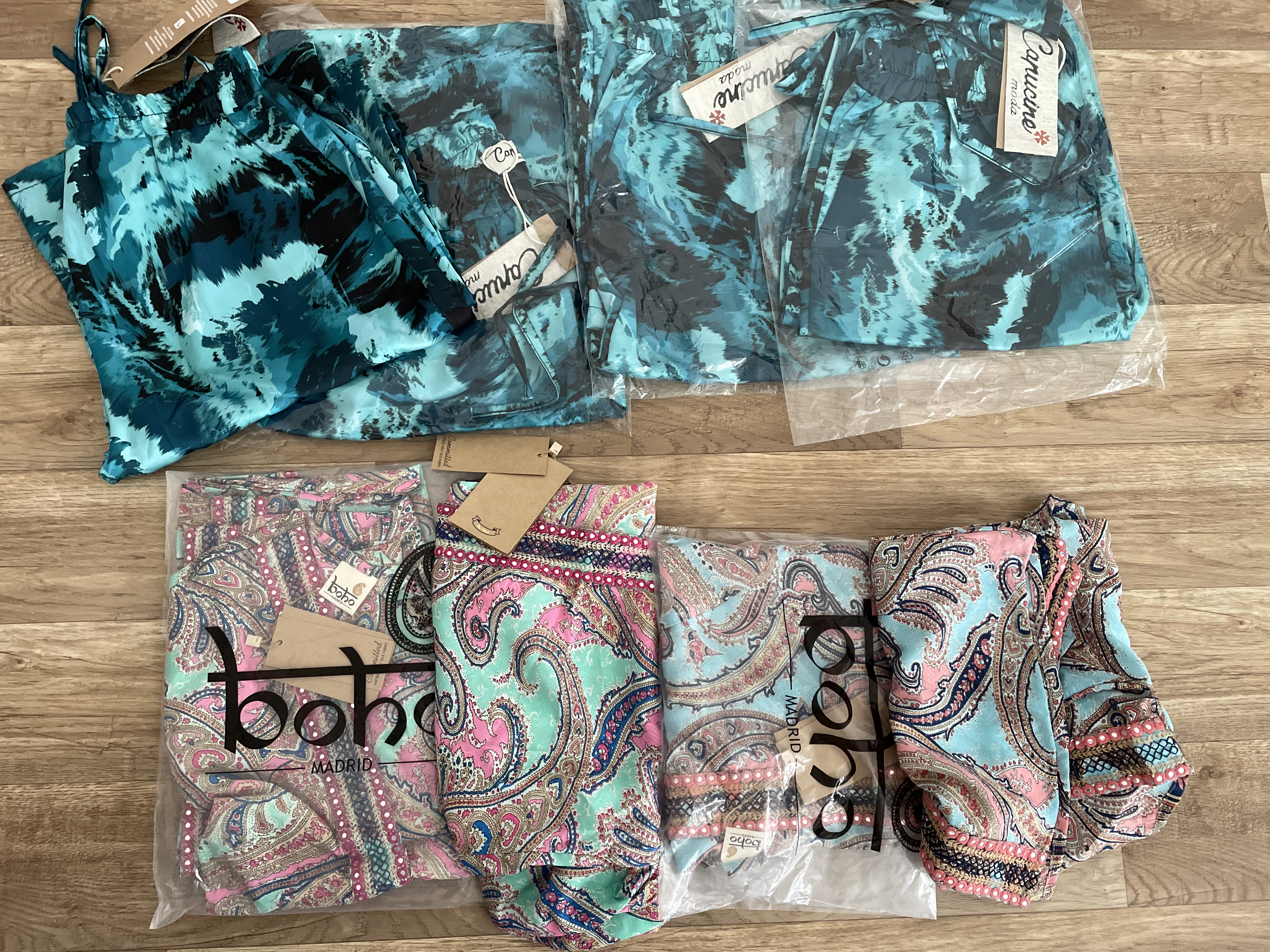 - 4 pantalons fluides tie and dye bleu avec poches latérales et ceinture élastique TU, marque CAPUCINE, made in Italie