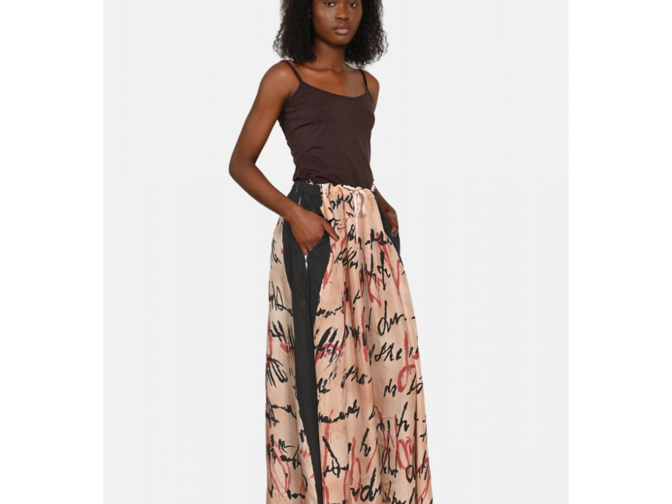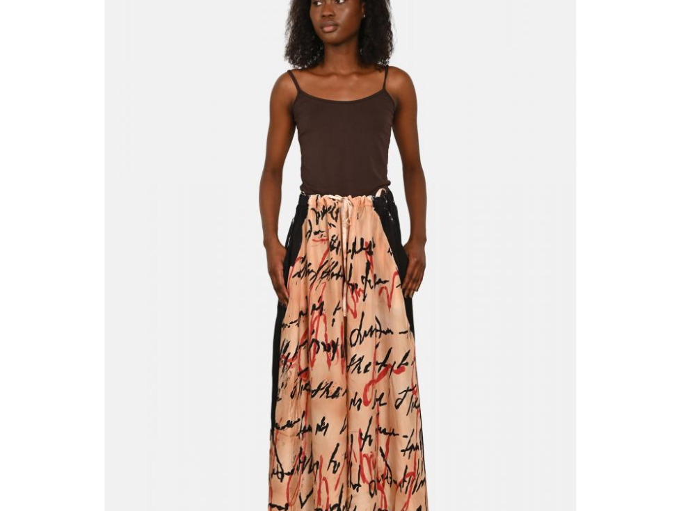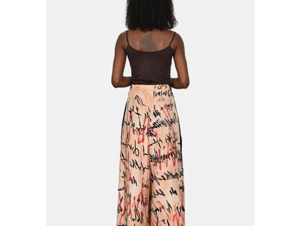 SONNET ART DESIGN, pantalon en soie 100% avec motifs artistiques.