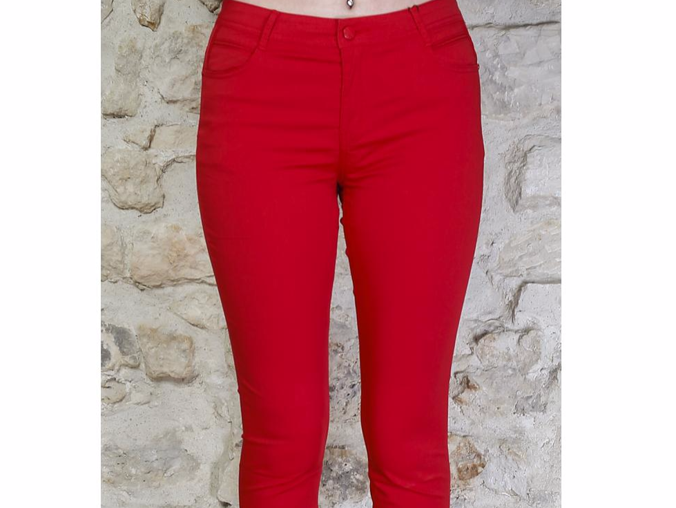 Pantalon femme Namina couleur rouge , composition: 30% polyamide, 65% coton et 5% élasthanne.