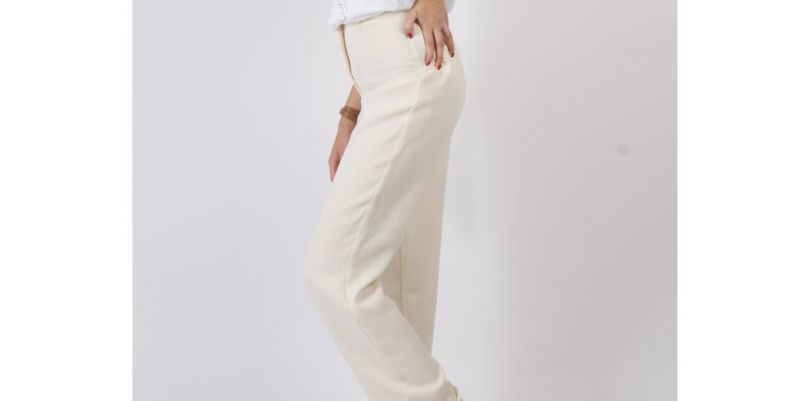 NAKD - Pantalon Large Taille Haute Couleur Blanc Cassé