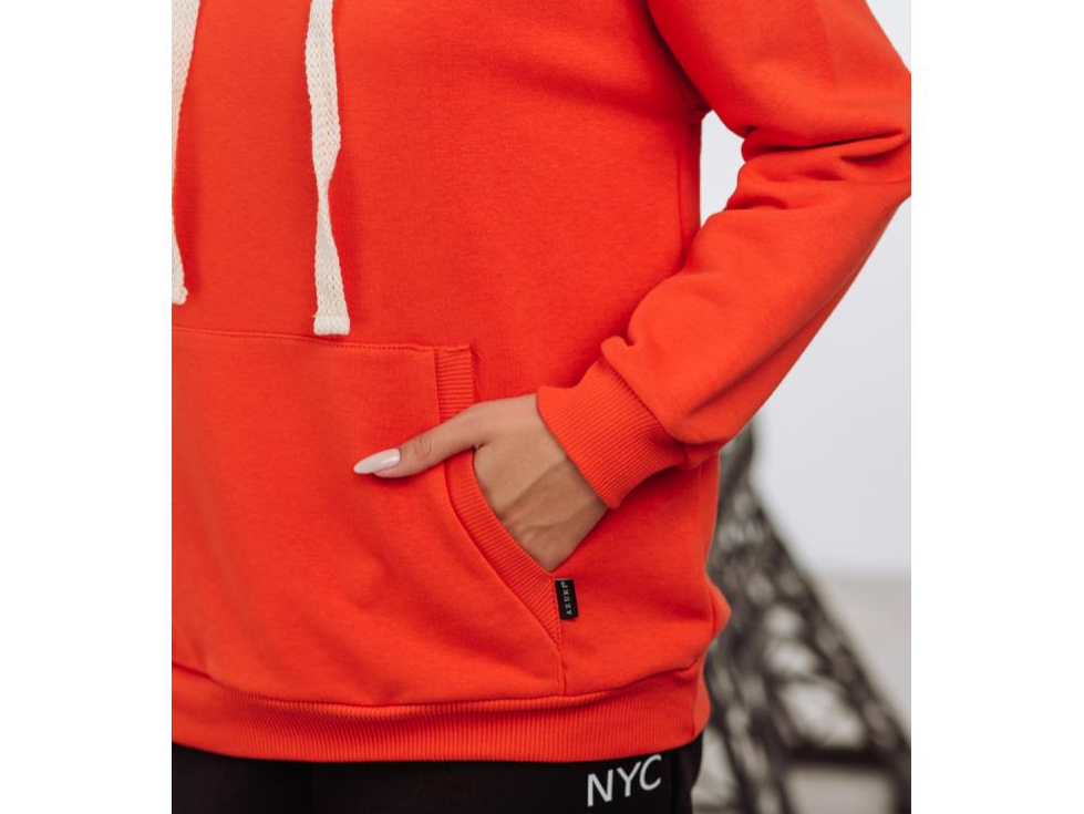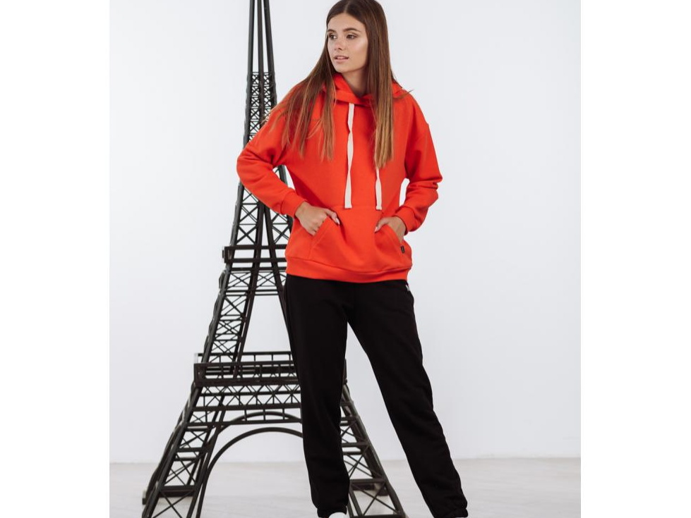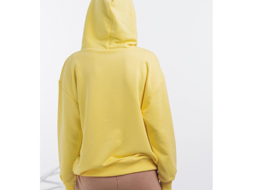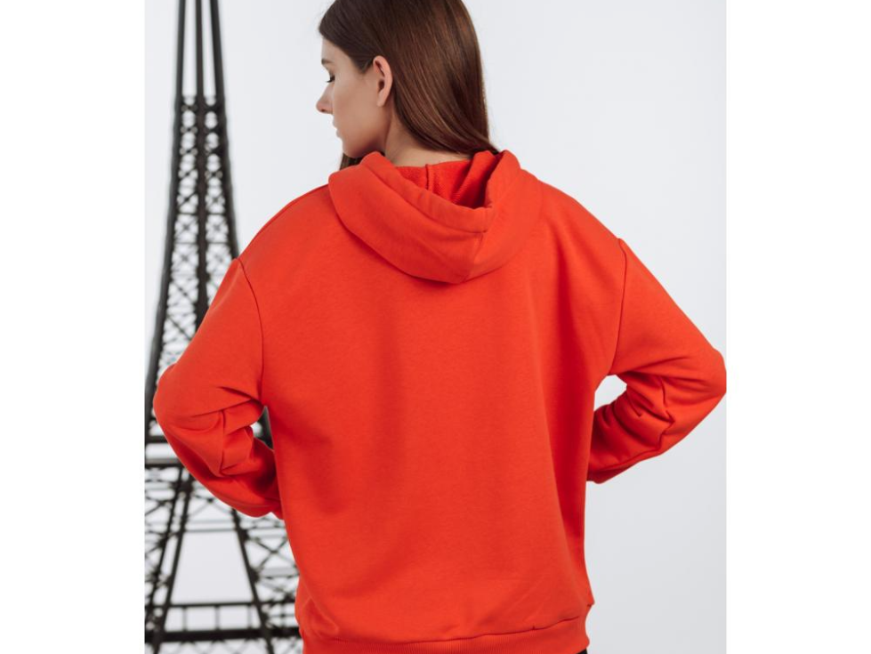 Sweat-shirt surdimensionné élégant en 100% coton écologique. Poche kangourou sur le devant, capuche avec cordon de serrage, patch griffé sur le côté de la poche. Couleurs vives et tendances.