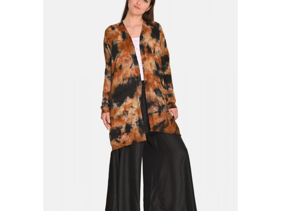 LDS KNIT CARDIGAN - Robes de luxe en cashmere et soie avec motifs fait à la main, méthode shibori