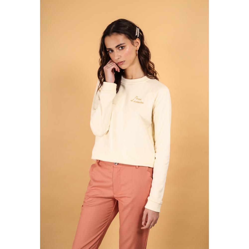 Nos sweats Paris d’Artistes en coton doux ne vous quitteront plus. Imaginés dans un atelier parisiens, leur coupe est droite avec un col rond et une broderie dorée sur le devant.