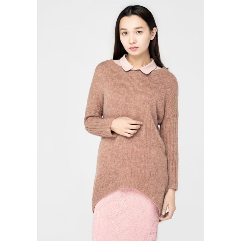 Fine-tunic sweater tunic, 3/4 sleeves, shorter front, acrylic-42%, polyamide-30%, mohair-14%, wool-14%. Made in Italy
