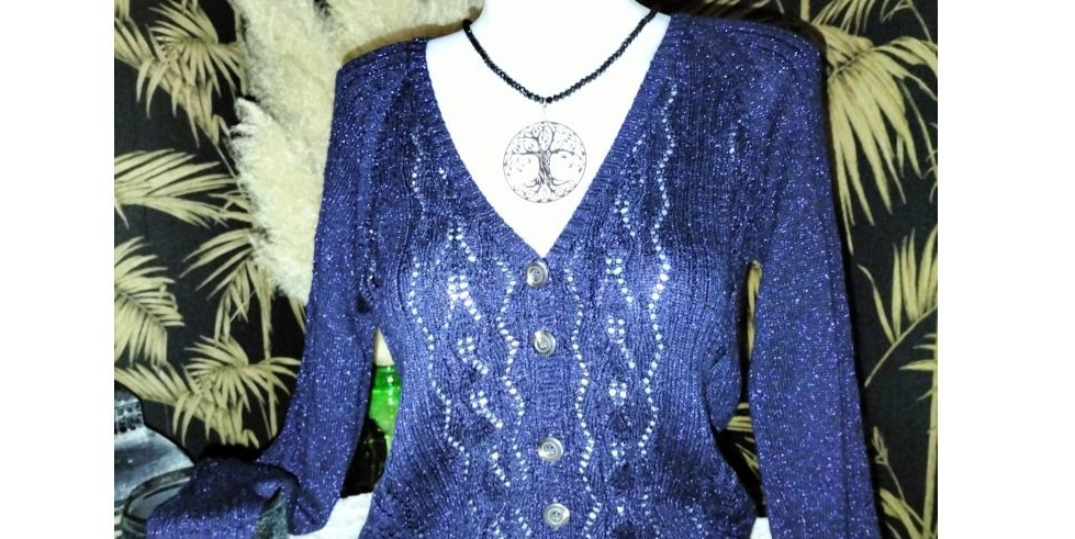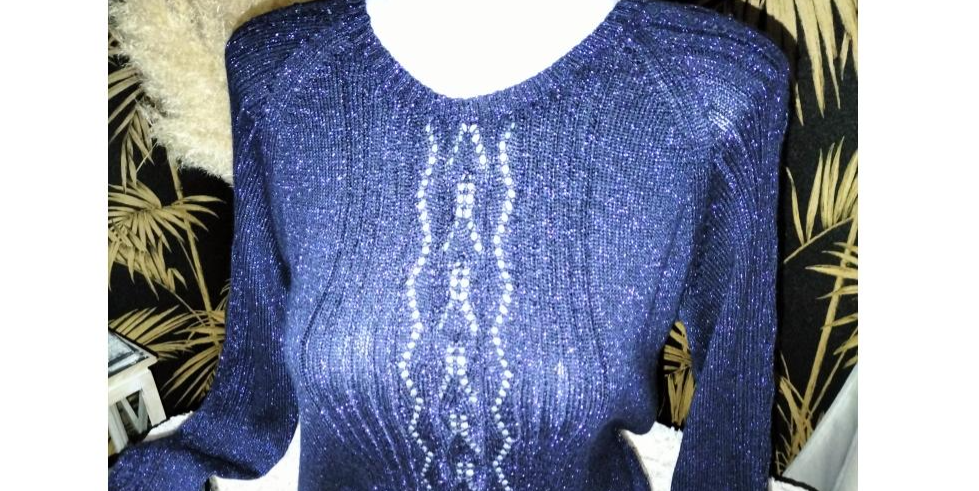 Cardigan bleu paillette réversible ,viscose ,polyamide, T unique