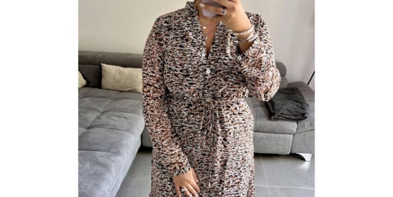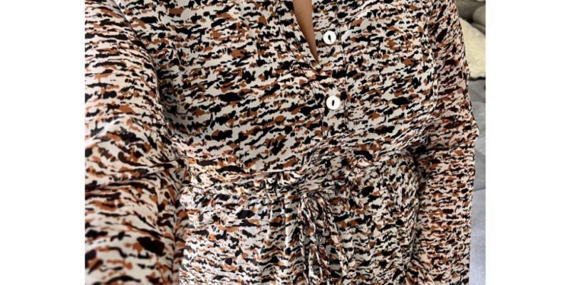 Robe longue manche longue beige motif léopard