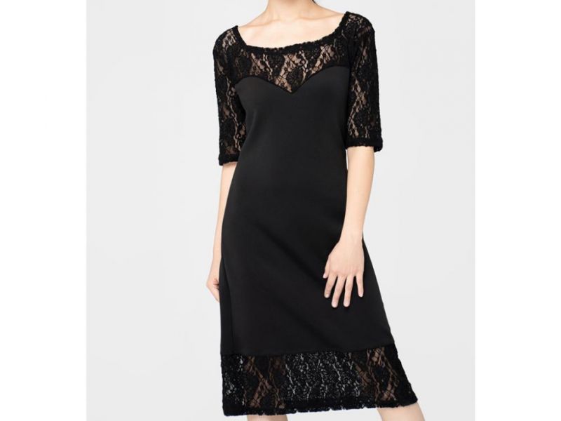 Dress with lace inserts on the back and bottom, 3/4 sleeves