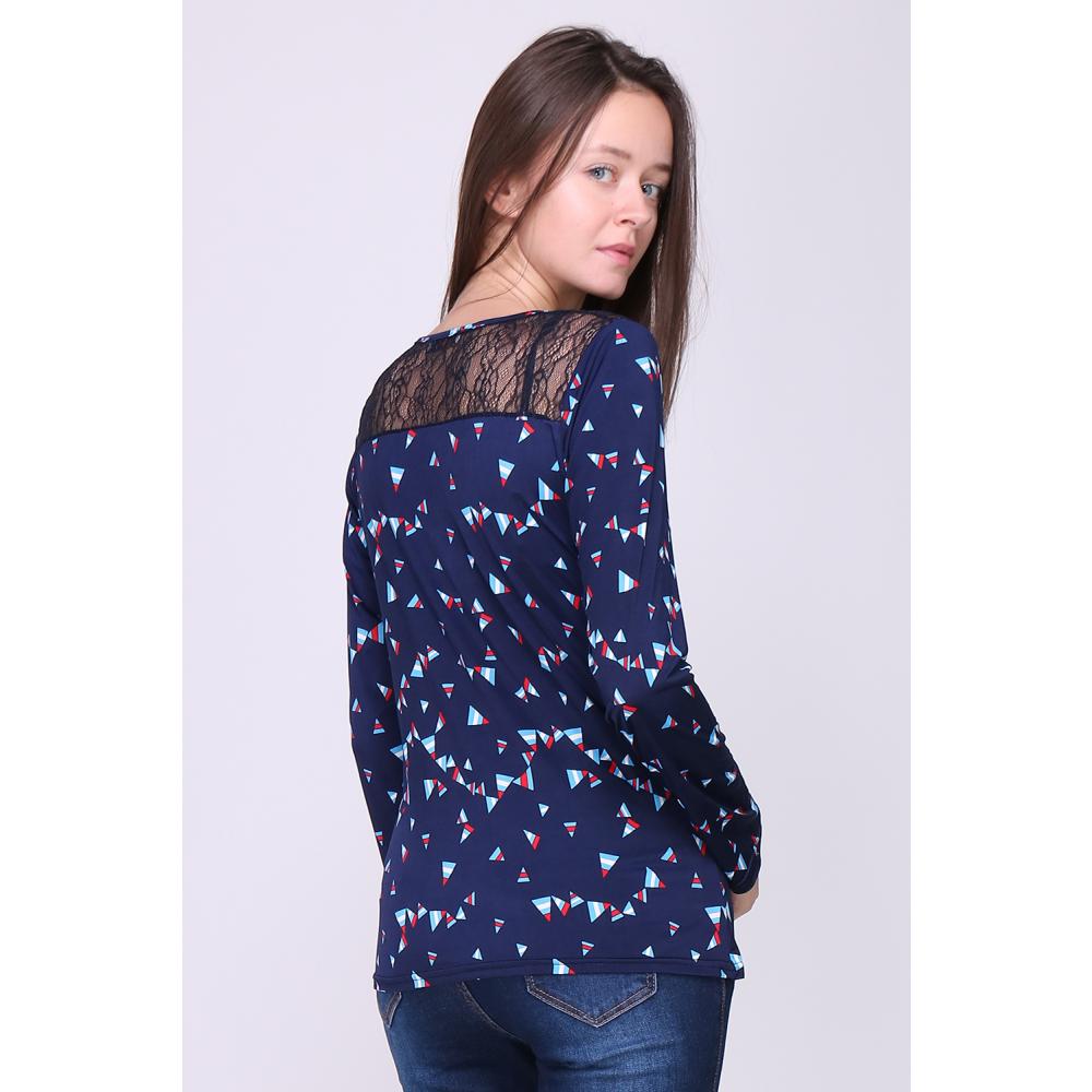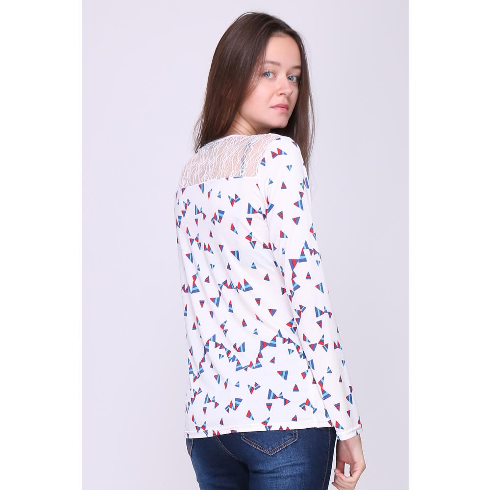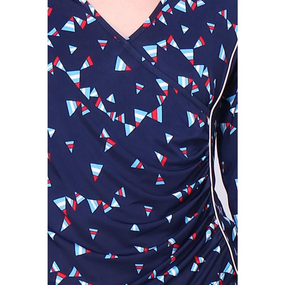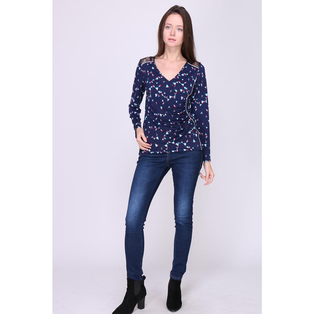 Blouse imprimé triangle, coupe droite, manches longues avec plis vers le bas, col V zippé.